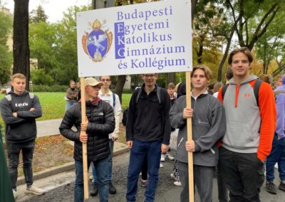 2022. szeptember 17-én iskolánk részt vett a főváros legsajátosabb gyalogos zarándoklatán, az ötévenként megrendezett 14 km-es Mindszenty gyalogos zarándoklaton, mely a Városmajorból indult és a Máriaremetei kegytemplomban ért véget.